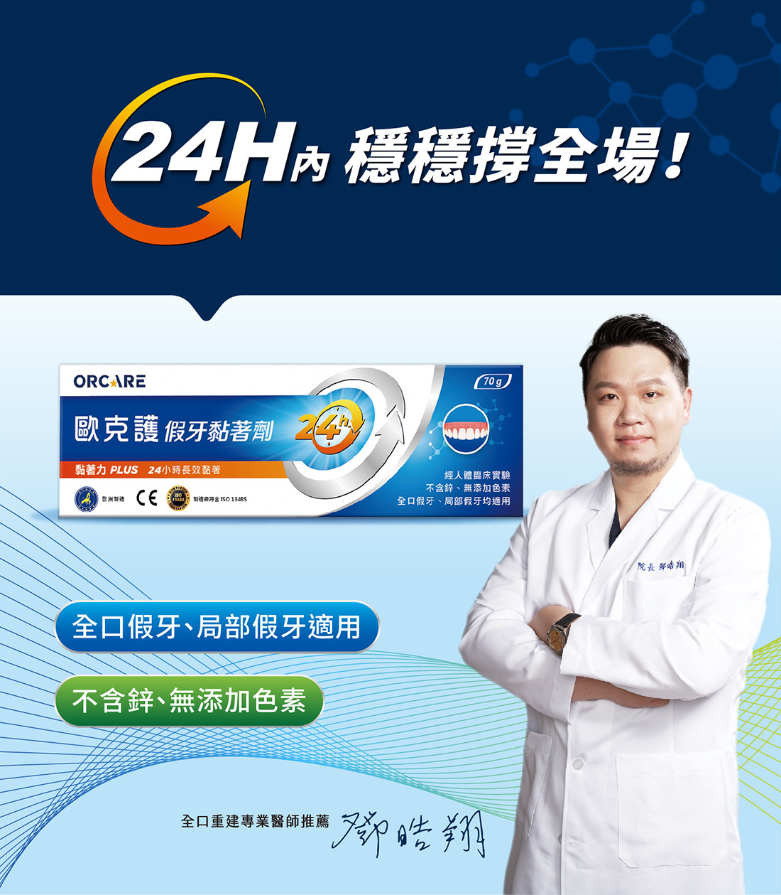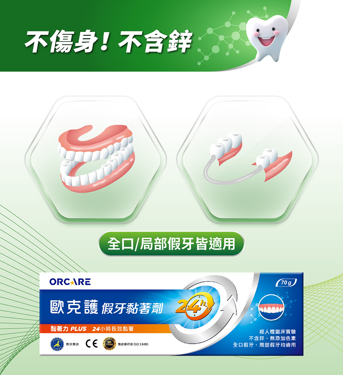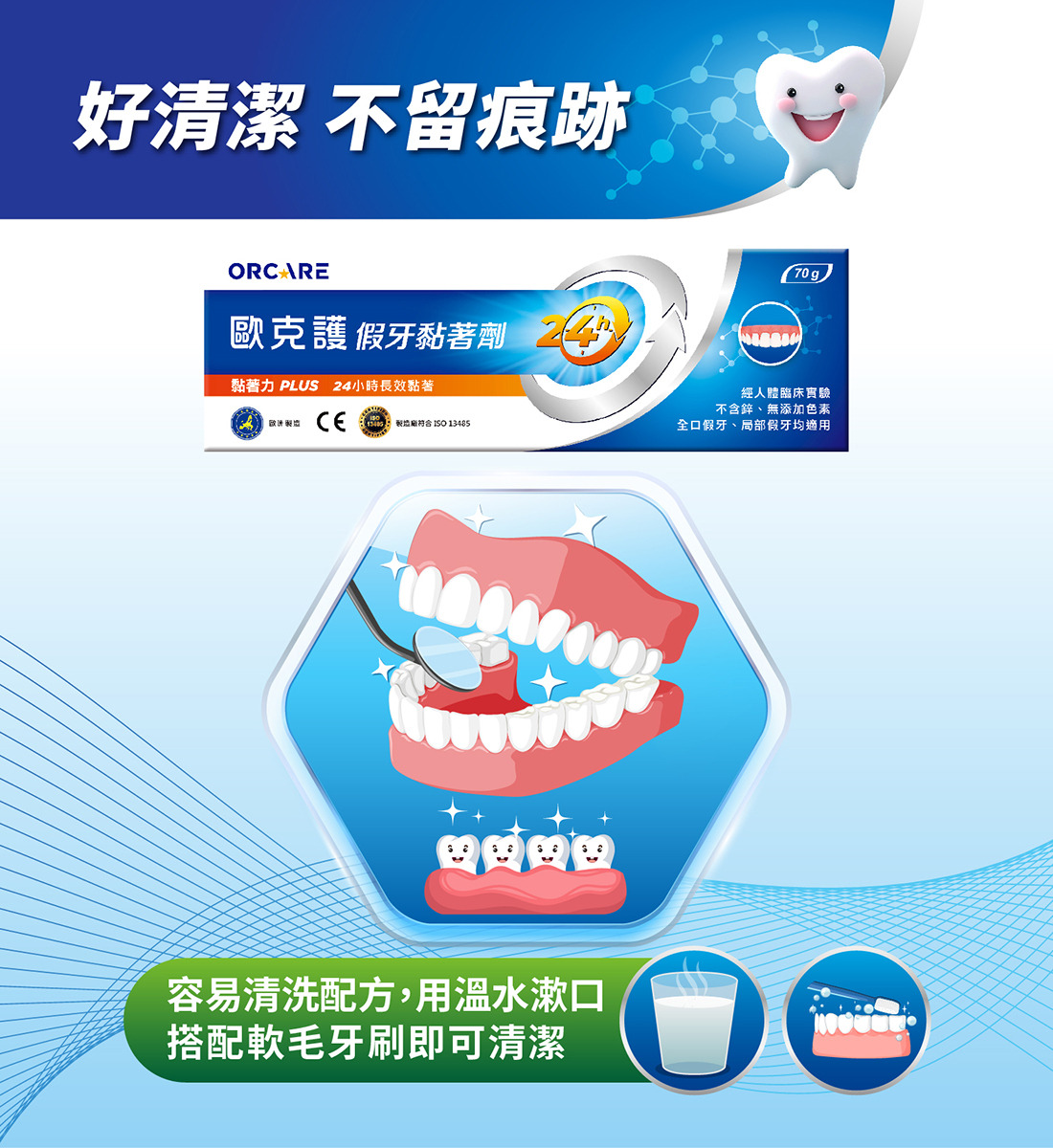 歐克護假牙黏著劑 未滅菌- 無味 安心長效24H守護(70g/入)