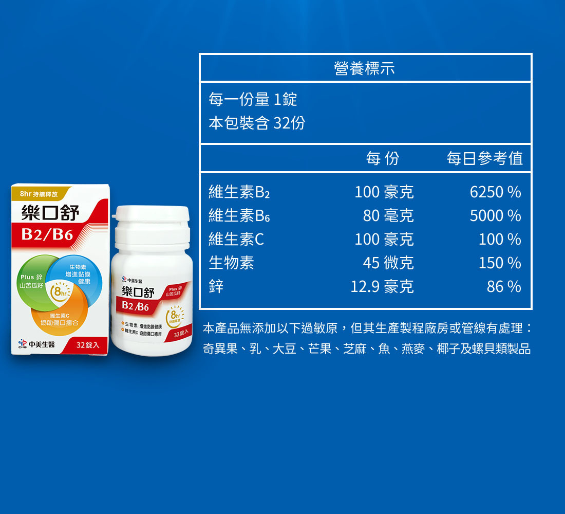 中美 樂口舒 B2/B6緩釋錠